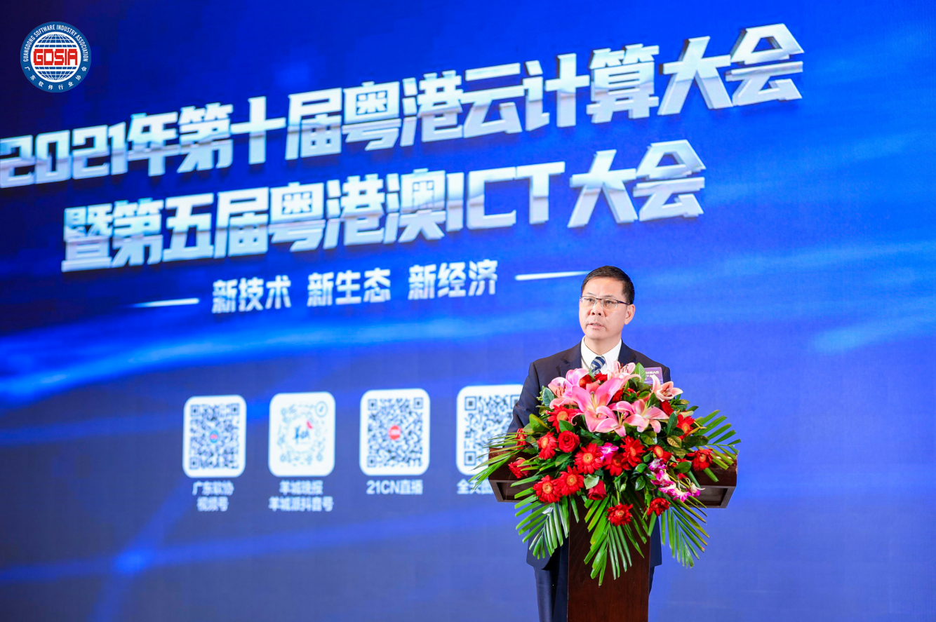 2021 年 12 月 21日,由中国电子信息行业联合会、广东软件行业协会、羊城晚报报业集团、香港数码港管理有限公司、澳门电脑学会共同举办的“新技术 新生态 新经济——2021年第十届粤港云计算大会暨第五届粤港澳 ICT 大会” ,在广州东方宾馆会展中心隆重举行。广东省工业和信息化厅、香港特区政府政府资讯科技总监办公室、羊城晚报报业集团领导,粤港澳三地专家及相关行业组织、高校、企业、学生代表,以及广东软件行业协会、广东省大数据协会、广东省云计算产业联盟、 广东省信息技术应用创新产业联盟、广东省数据中心产业联盟成员,共约300人参加了大会。